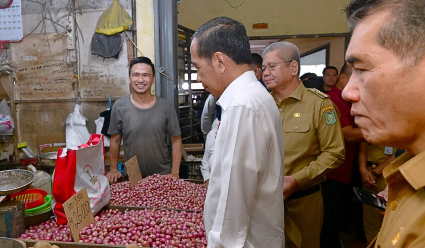 FAKTAGRUP- Presiden Joko Widodo (Jokowi) mengunjungi Pasar Mawar, Kota Pontianak, Kalimantan Barat. Kunjungan tersebut dilakukan untuk meninjau langsung harga dan ketersediaan sejumlah bahan pokok.
