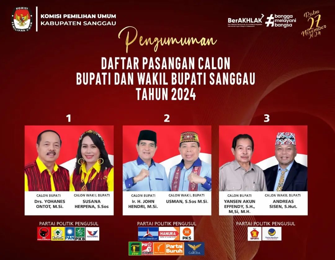 “Ayo datang ke TPS pada hari Rabu tanggal 27 November 2024. Mari gunakan hak pilih, untuk memilih Calon Gubernur dan Calon Wakil Gubernur Kalimantan Barat dan Calon Bupati dan Calon Wakil Bupati Sanggau tahun 2024,” pungkasnya.