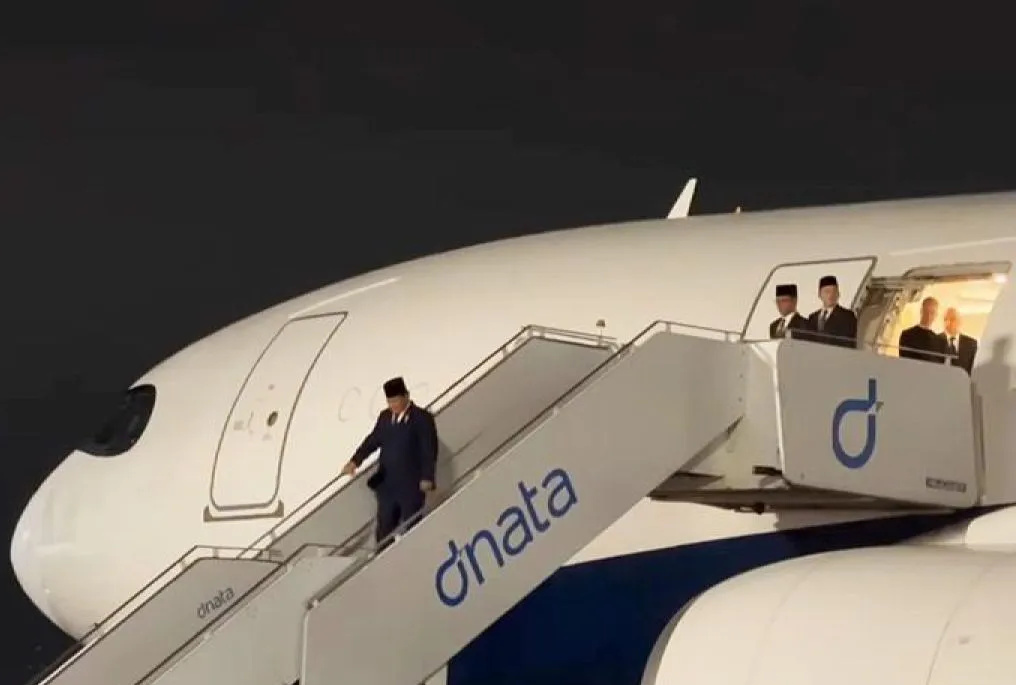 Presiden tampak didampingi Menteri Luar Negeri Sugiono dan Sekretaris Kabinet Teddy Indra Wijaya dan putranya Aditya Hediprasetyo.