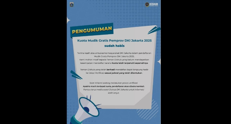 PENGUMUMAN, Kuota Mudik Gratis Pemprov DKI Jakarta 2025 sudah habis